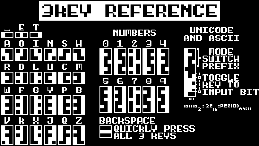 3key is an experimental input method involving, you guessed it, just three keys.