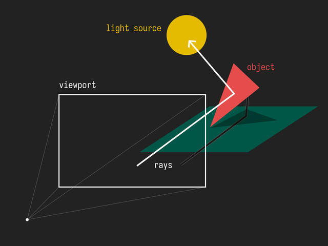 raytracing is the more intuitive approach to understand from the two. it works on the principle of your eye - a bunch of photons (particles of light) get sent out from various light sources and bounce around until some of them reach your eye. computers take a tad more efficient approach to this by checking only the rays of light that will reach the eye (camera), by just projecting them from the eye itself (which is equivalent)